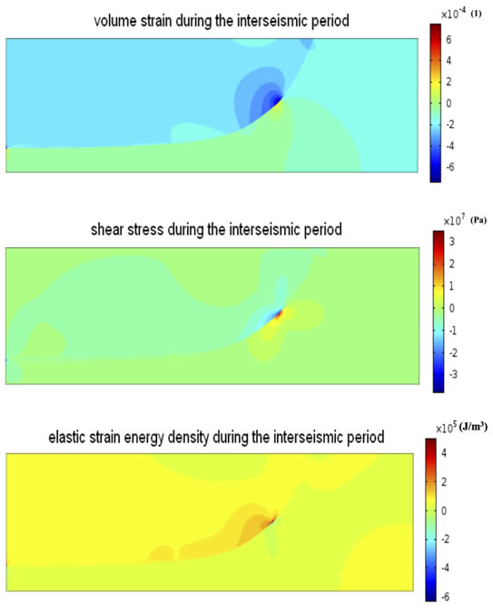 利用弹性有限元方法,以GPS观测结果为基础,考虑重力作用,对汶川地震的主震断层震前应力场演化进行了定量分析。模拟结果证实了汶川地震是在青藏高原侧向挤压和四川盆地阻挡作用下形成的。尽管GPS观测到的跨龙门山断裂带的形变速率很低,但由于断层的闭锁,应力逐渐向断层附近集中并在断层下部缓慢累积,至剪应力超过摩擦强度时,发生地震。